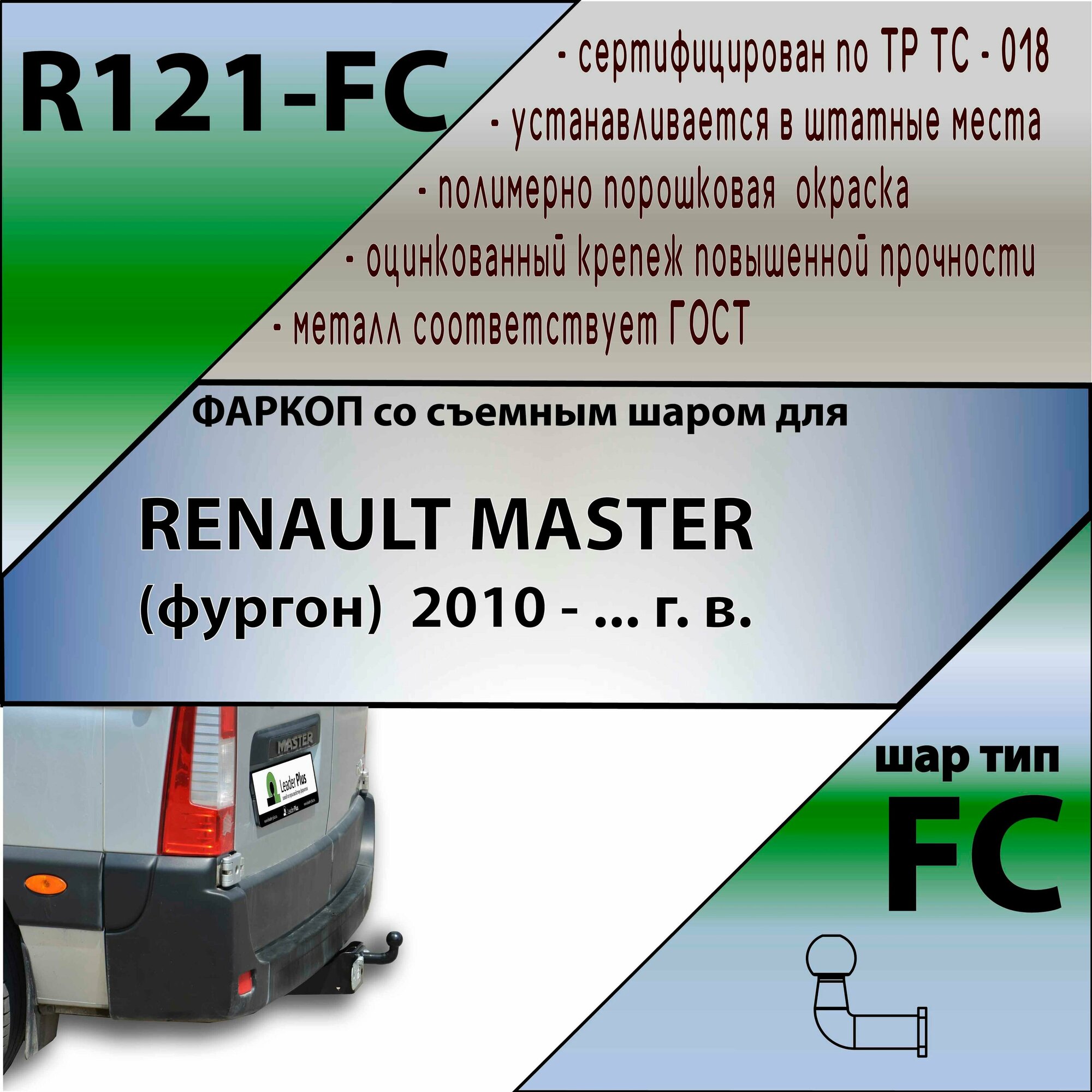 10 цен на Фаркоп R121-FC Лидер плюс для RENAULT MASTER (фургон) 2010 - г. в. (без электрики)