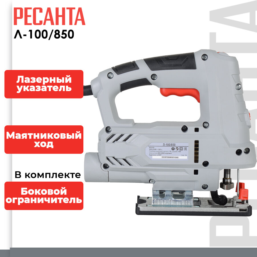 Лобзик сетевой, 850 Вт, 3000 ход/мин, глубина реза 100 мм, РЕСАНТА Л-100/850 75/9/4 информация: