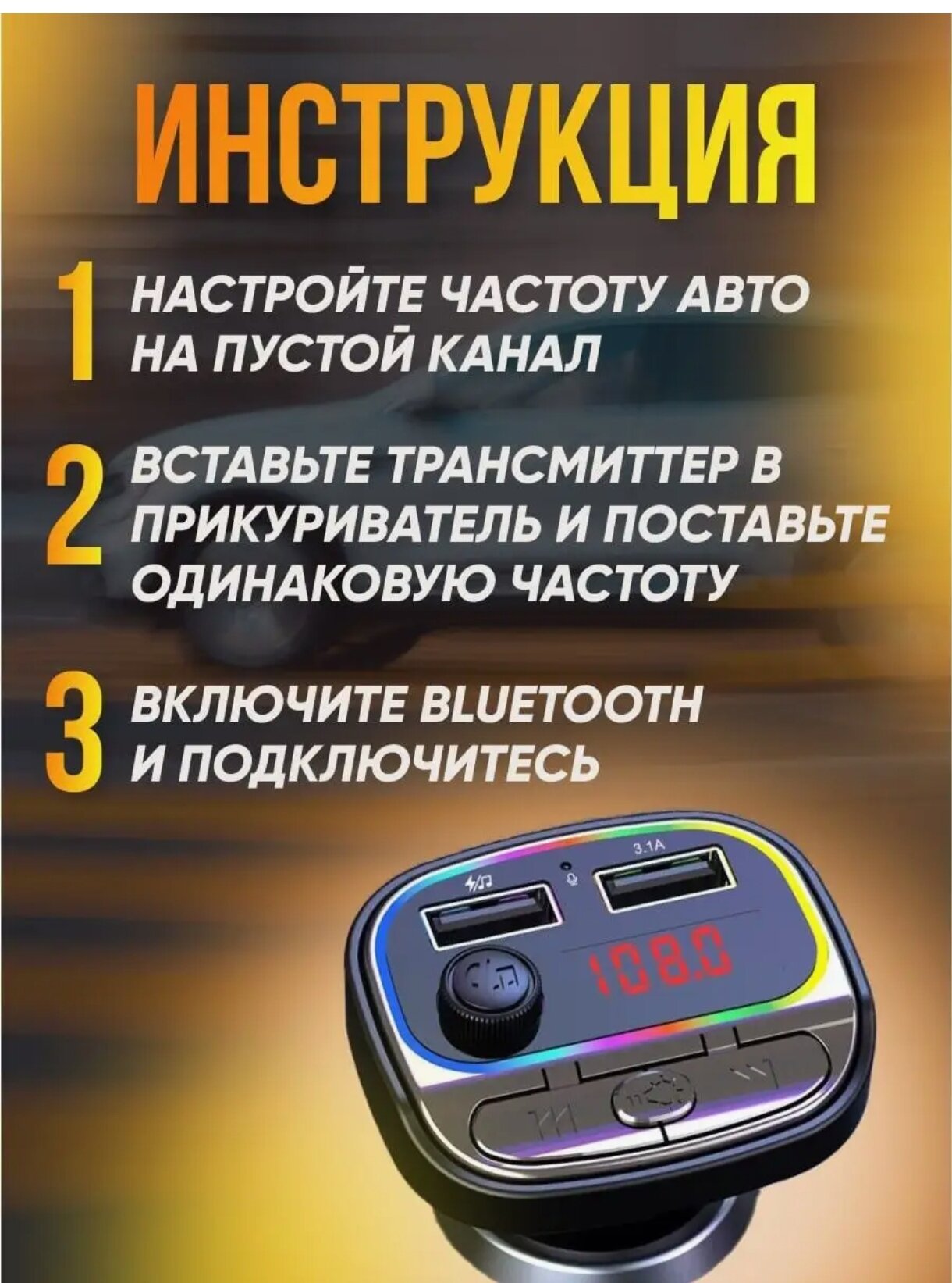 FM трансмиттер Bluetooth USB-C фм модулятор автомобильный информация: