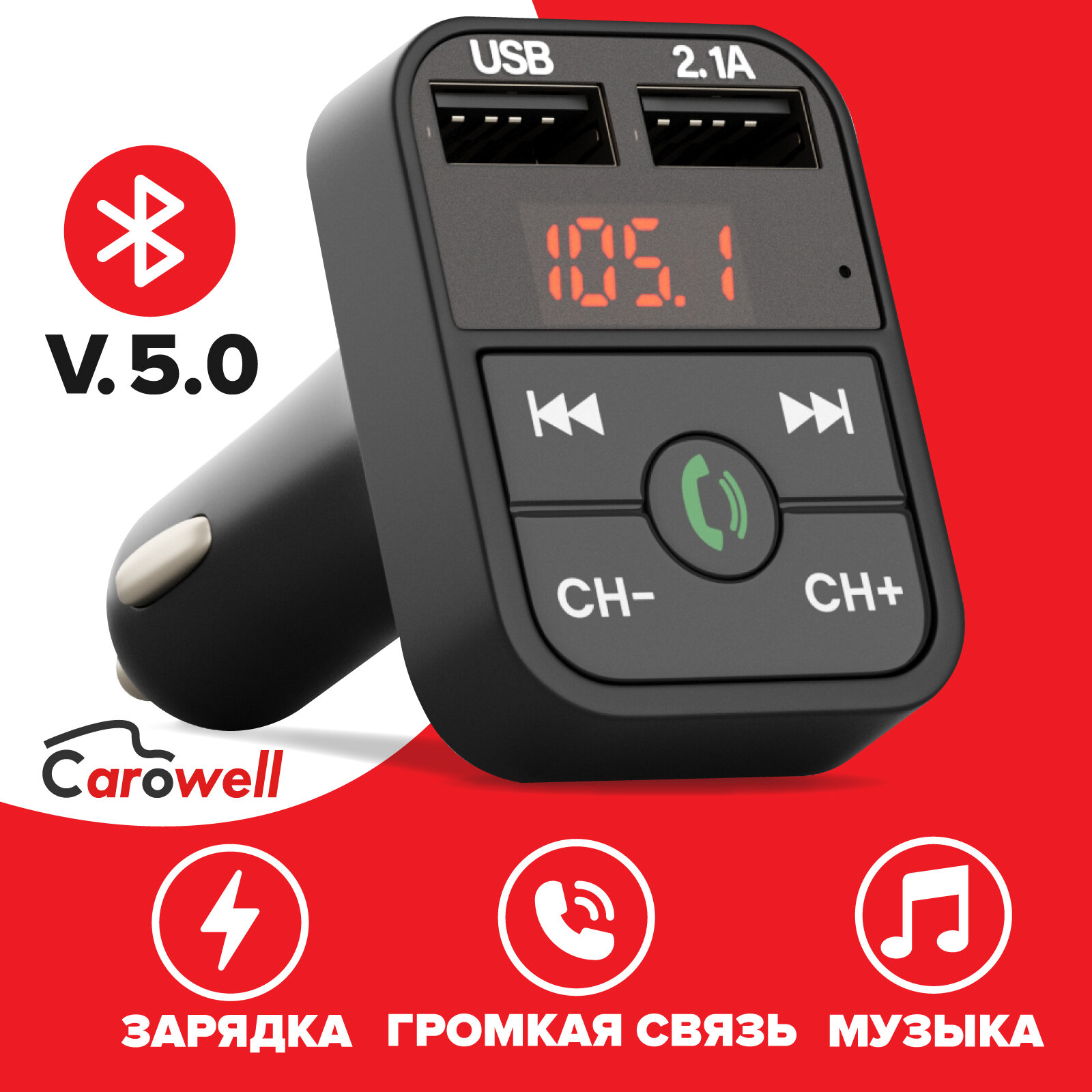 Отзывы на Трансмиттер для автомобиля Carowell. 2 разъема usb. Поддержка TF карты