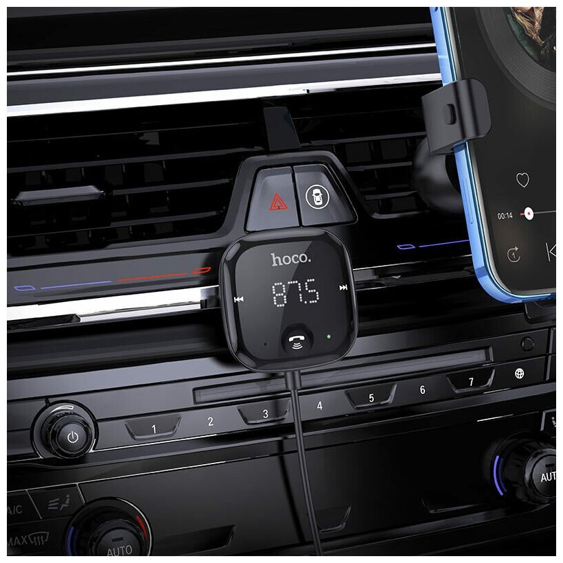 Автомобильный Bluetooth трансмиттер Hoco / Адаптер Bluetooth / автомобильный BT v5.0 FM передатчик / поддержка BT, TF, AUX режимов воспроизведения информация: