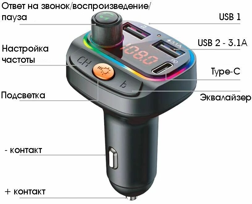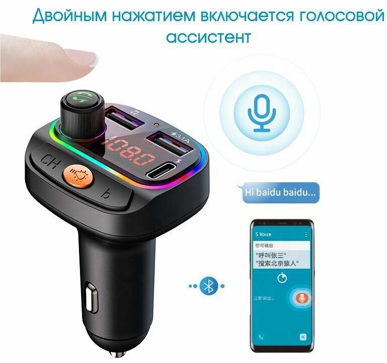 Орбита / TS-CAF120 FM-трансмиттер с bluetooth/микрофоном/ для автомобиля/ зарядник QC 3.0 для авто в прикуриватель