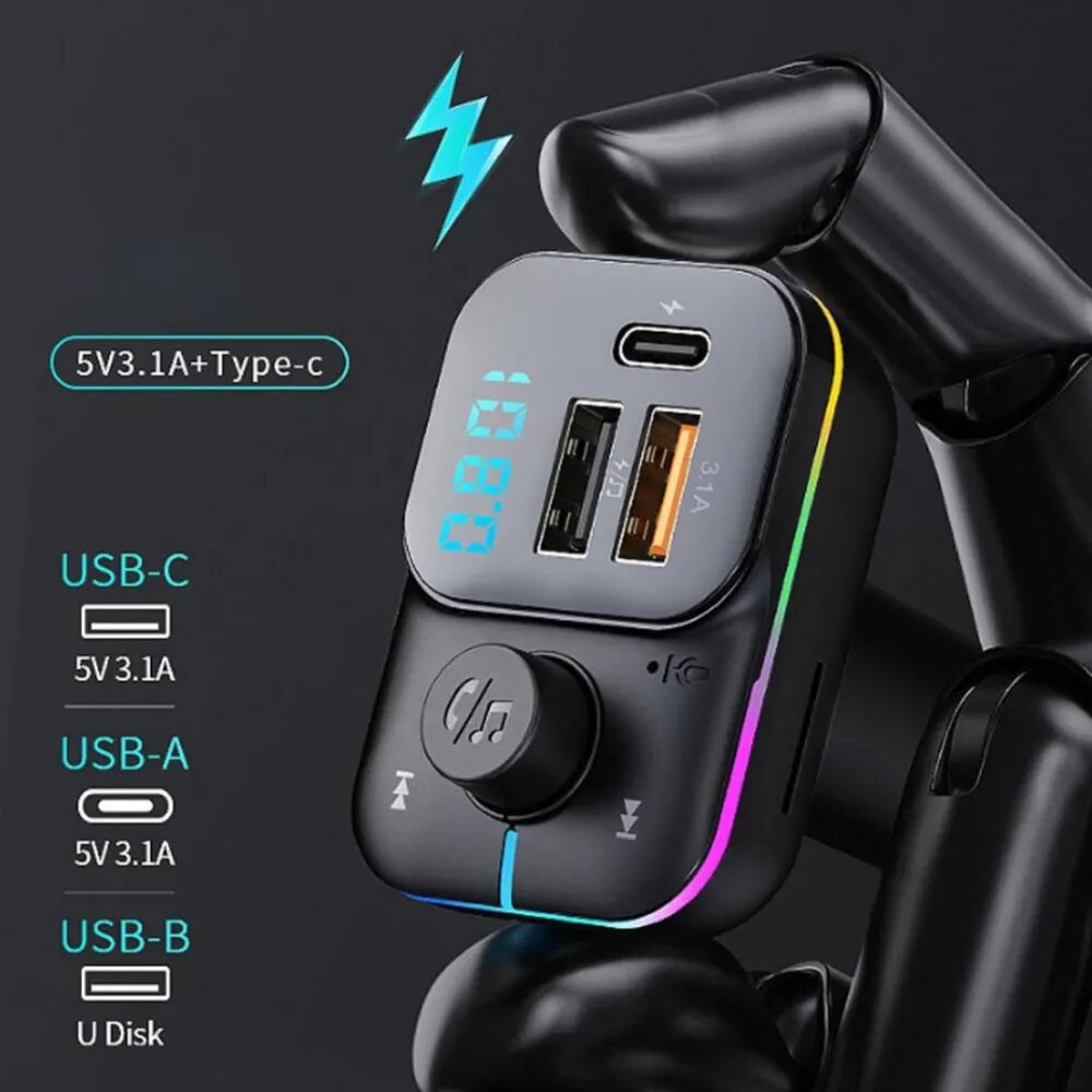 10 цен на FM трансмиттер Bluetooth с RGB подсветкой / Модулятор автомобильный / Адаптер быстрой зарядки с 3 USB 3.1 A TDS-19