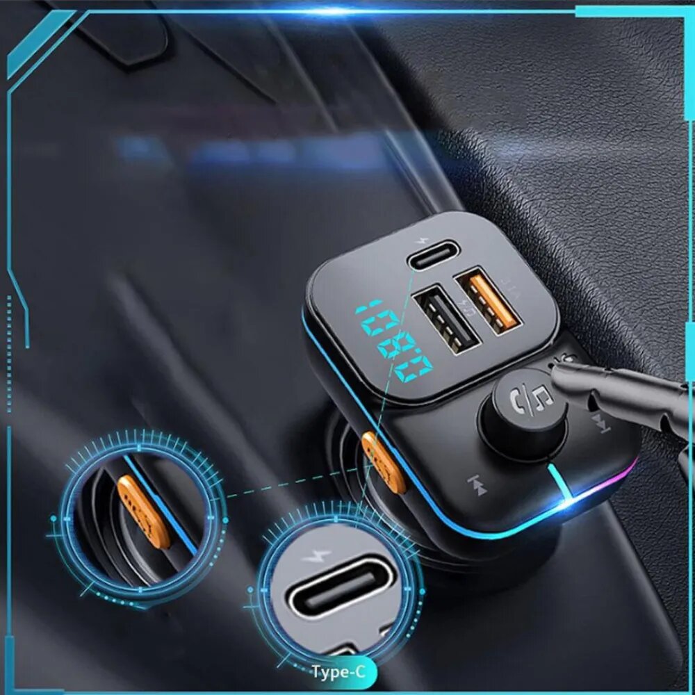 FM трансмиттер Bluetooth с RGB подсветкой / Модулятор автомобильный / Адаптер быстрой зарядки с 3 USB 3.1 A TDS-19 информация: