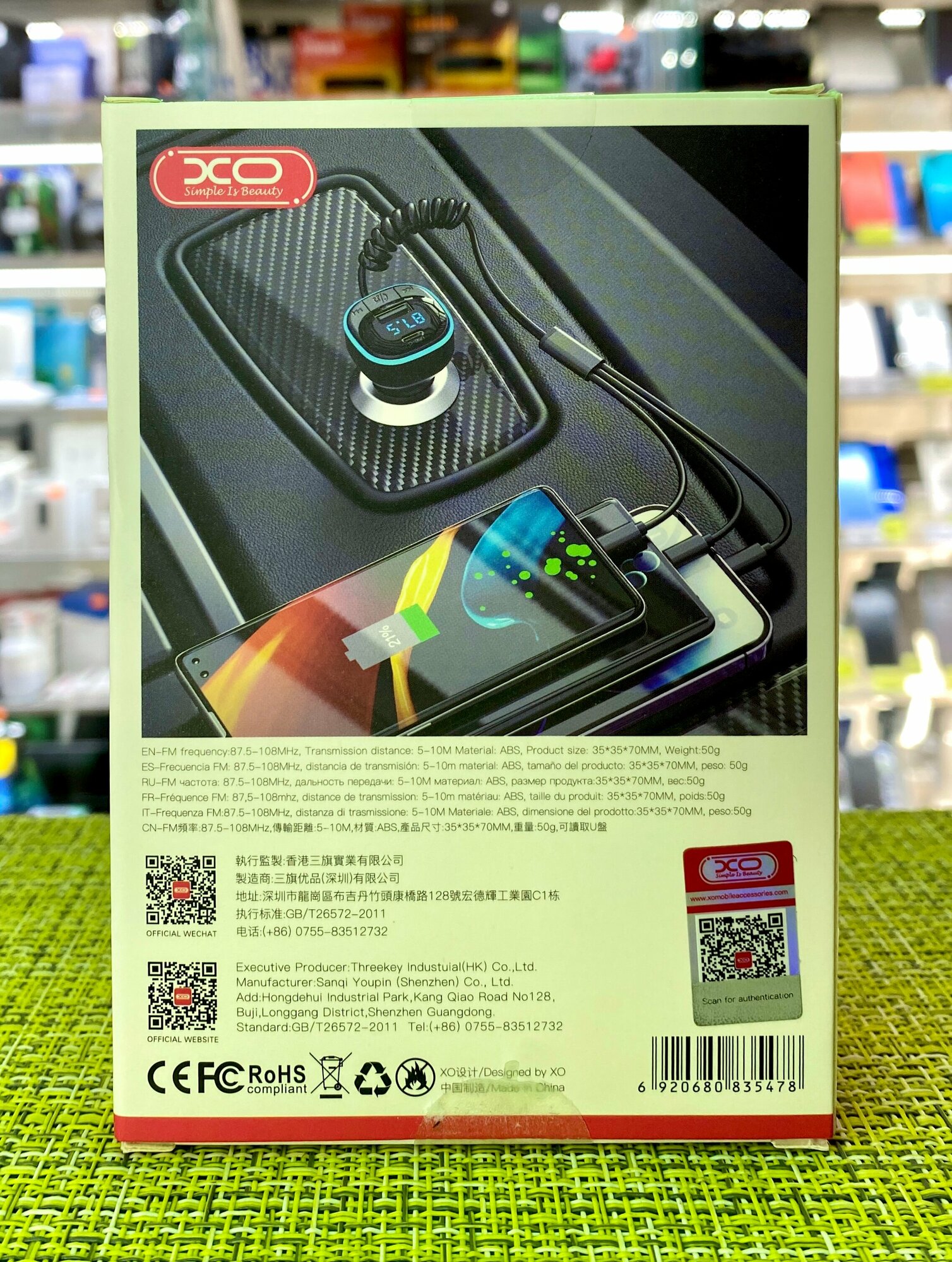FM-Модулятор BCC07 Bluetooth + 2 USB выхода на зарядку 3.1 A, Type-C, встроенные кабели, подсветка информация: