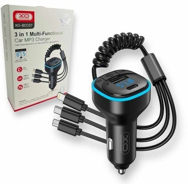 Отзывы на FM-Модулятор BCC07 Bluetooth + 2 USB выхода на зарядку 3.1 A, Type-C, встроенные кабели, подсветка