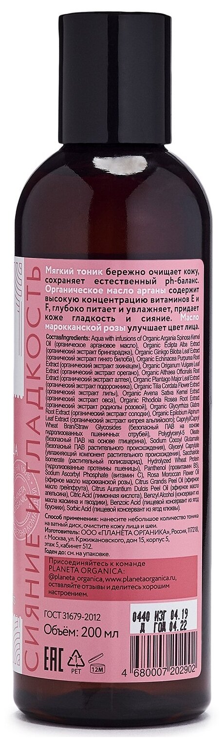 Planeta Organica Мягкий очищающий тоник для лица для сухой и чувствительной кожи 200 мл информация:
