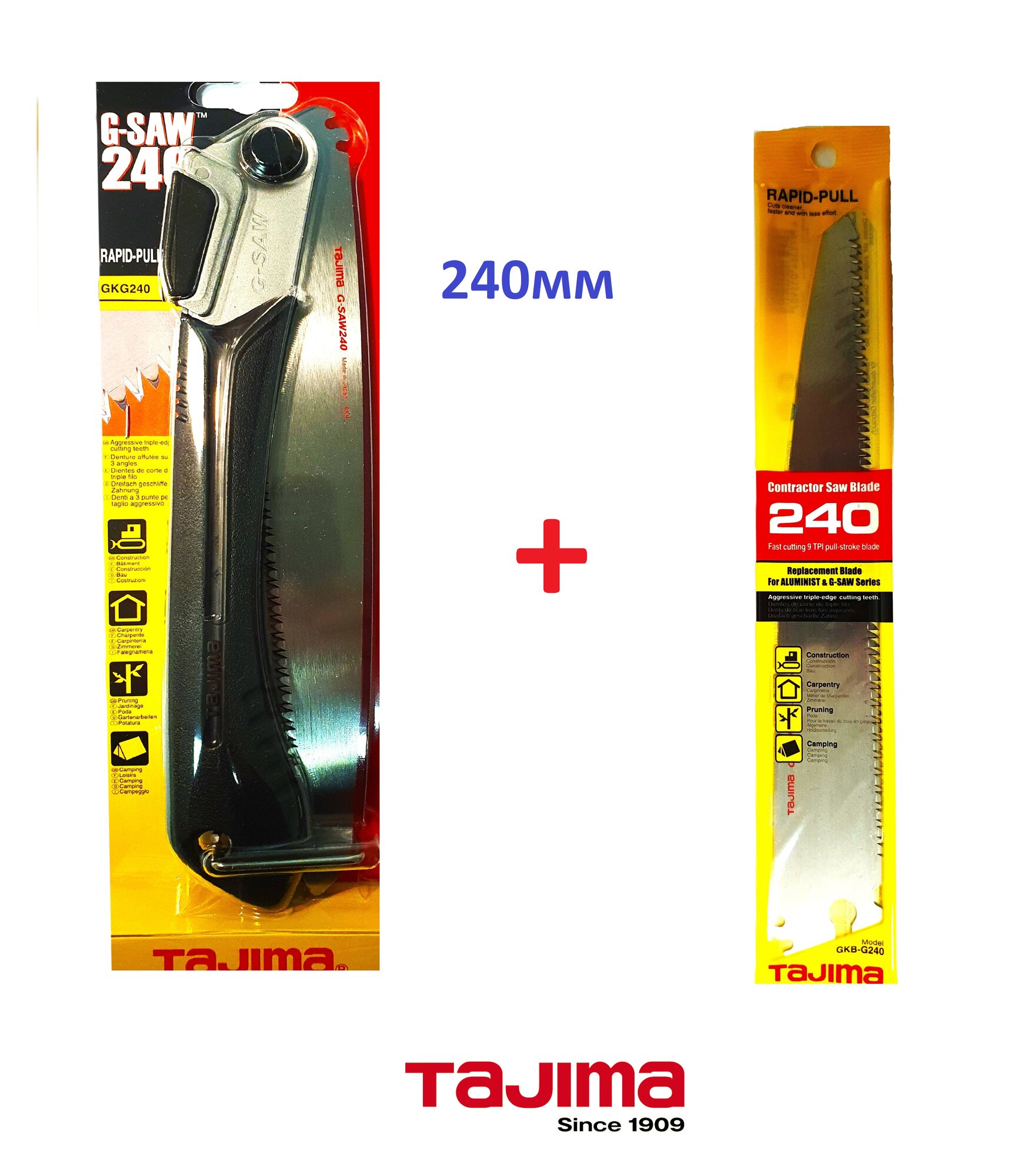 Ножовка складная TAJIMA Rapid-Pull G-Saw GK-G240 (240мм) + запасное полотно GKBG240 информация: