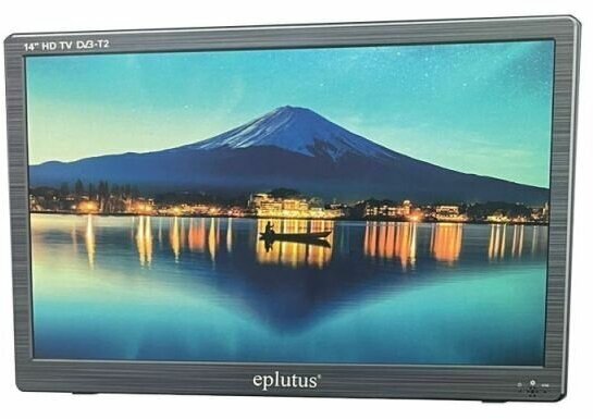 Телевизор Эплутус 143(Т)-EP (E2370EU) с TFT ЖК 14.1-дюймовым экраном и встроенным цифровым тюнером Т2 и аккумулятором 1500 мАч. Воспроизведение с USB