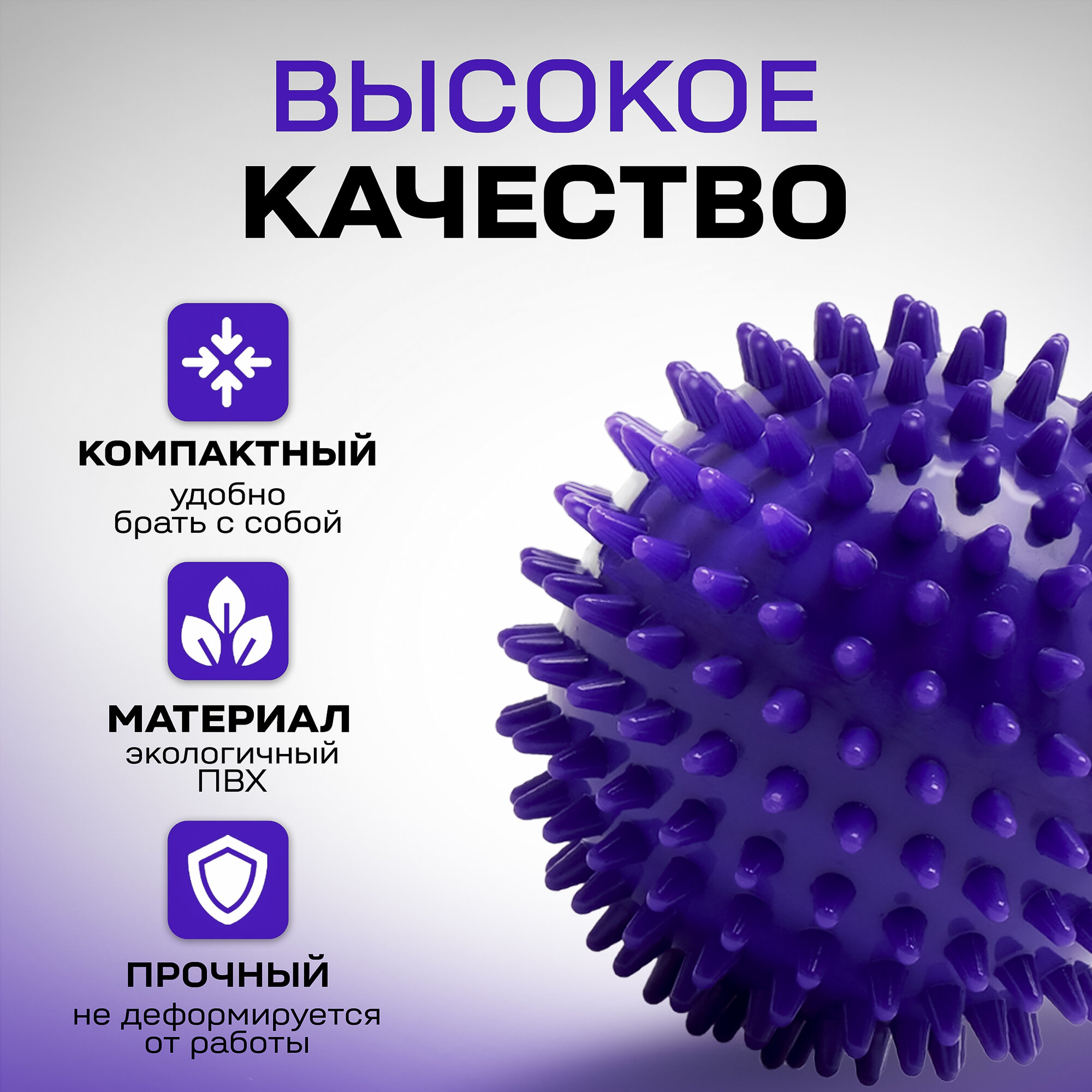 10 цен на Мяч-шар массажный с шипами, ежик жесткий для проработки мышц, Ø 8.5 см, фиолетовый