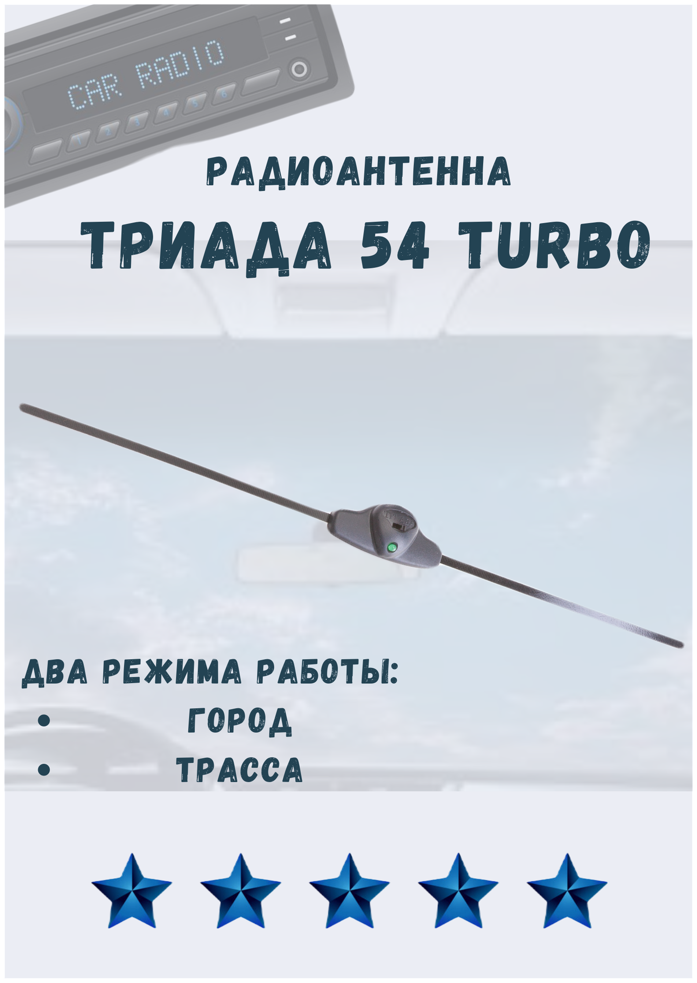Активная автомобильная радиоантенна "Триада 54 Turbo" два режима (1 - городской помехозащитный режим, 2 - загородный Турбо-режим) информация: