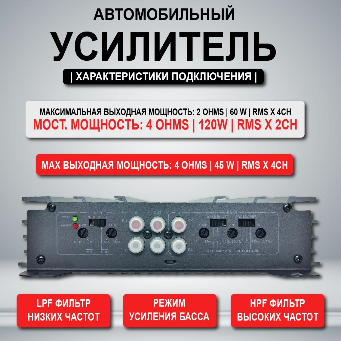 Усилитель звука автомобильный 4 канальный для сабвуфера для колонок информация:
