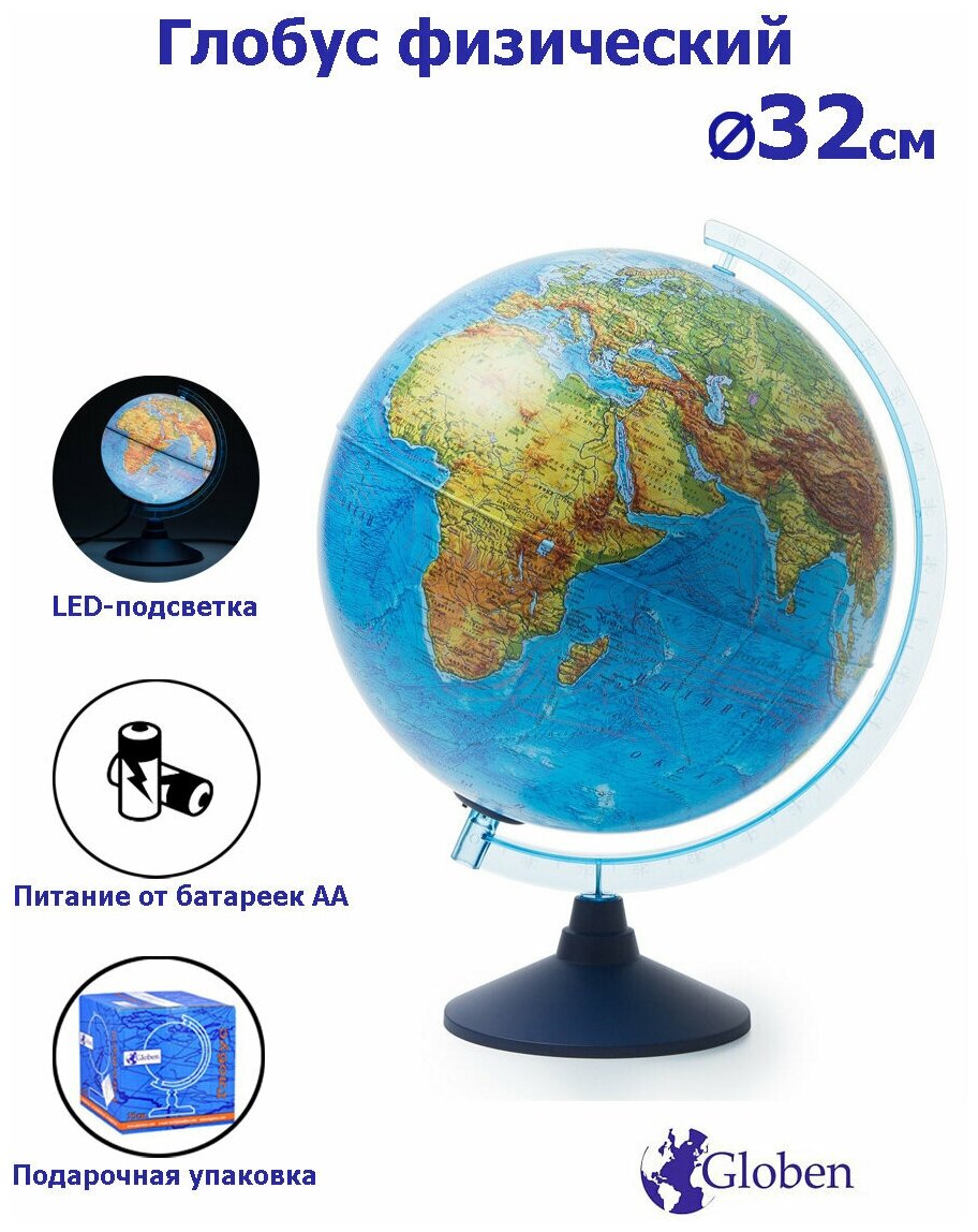 Globen Глобус Земли физический с подсветкой от батареек, диаметр 32 см. информация: