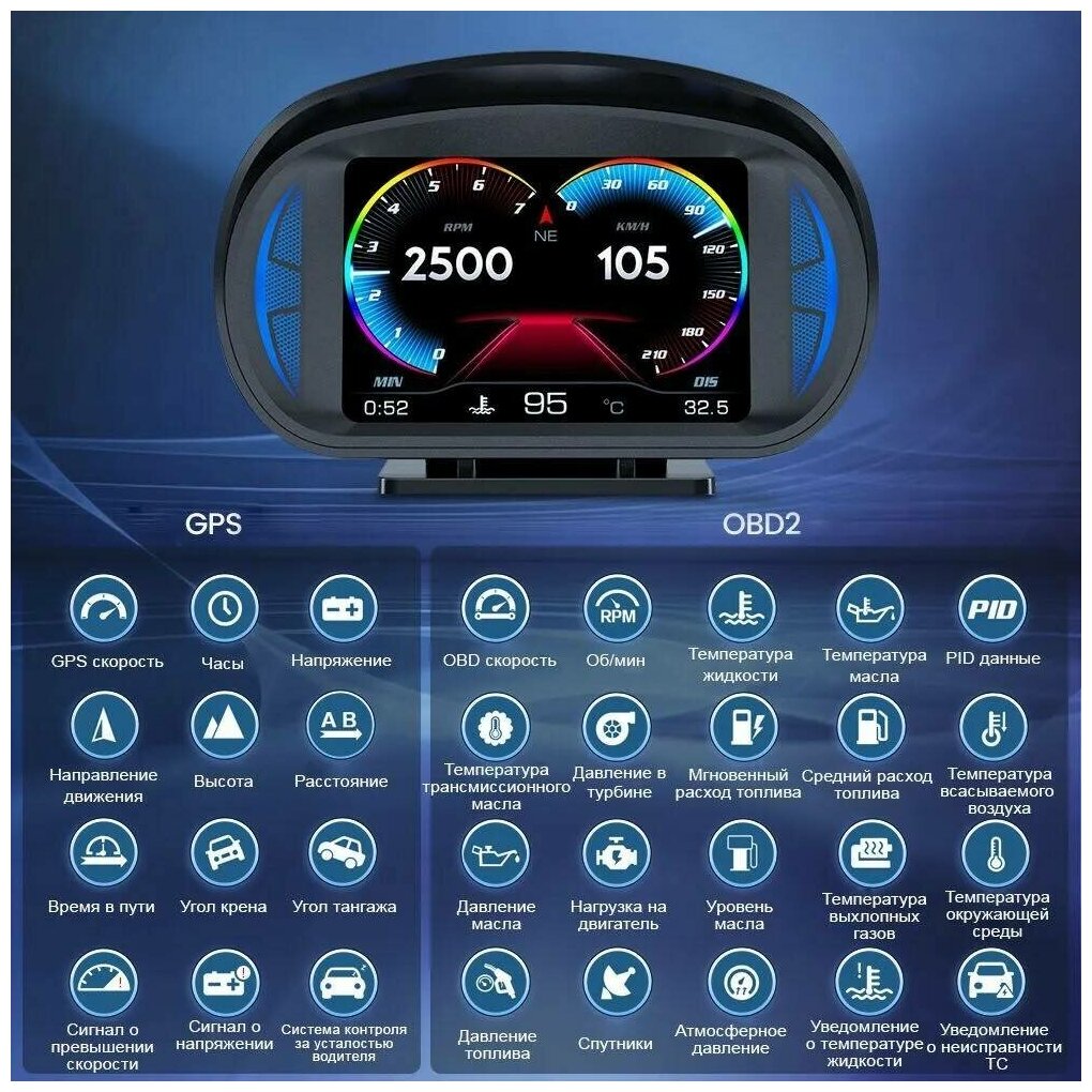 10 цен на Проекционный дисплей P2 (HUD) с подключением через OBD2