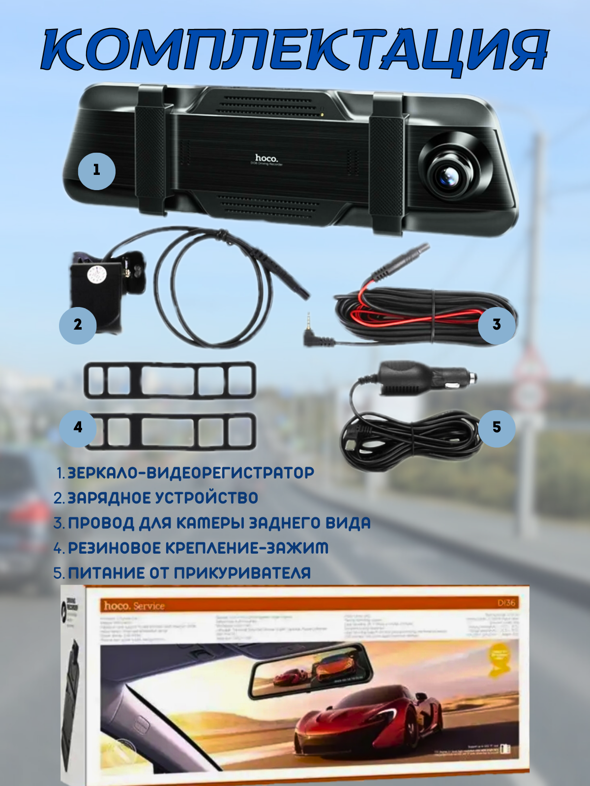 Видеорегистратор зеркало автомобильный Hoco d136 информация: