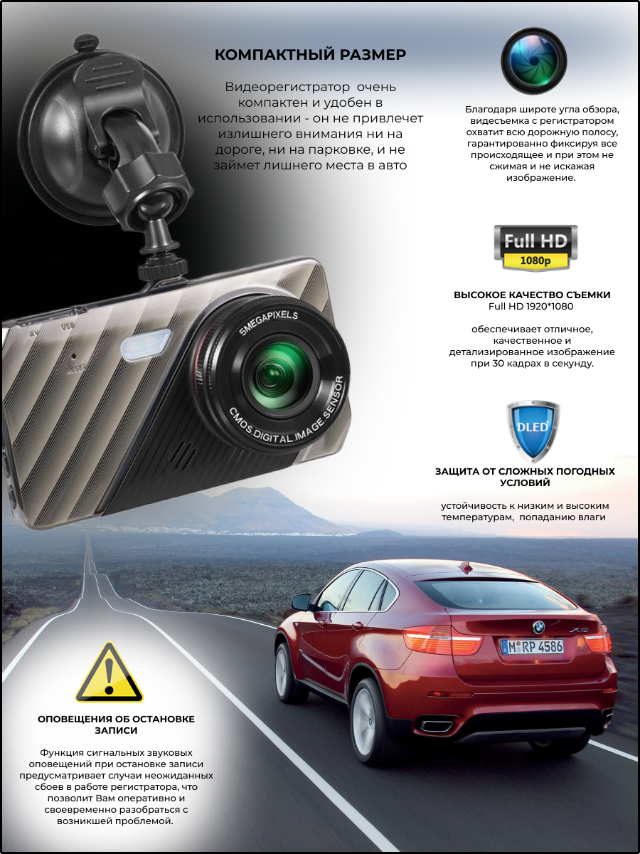 Видеорегистратор для автомобиля с камерой заднего вида информация: