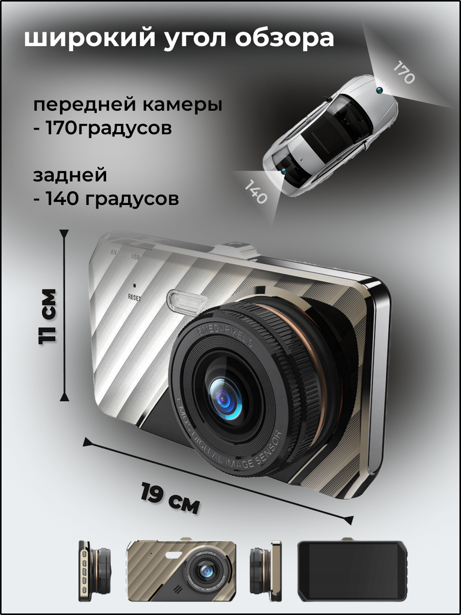 Автомобильный видеорегистратор, с камерой заднего вида, 2 камеры, 1920x1080