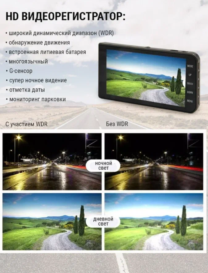 Видеорегистратор автомобильный LIDER FULL HD 1080P/2 камеры/G-сенсор/WDR технология информация: