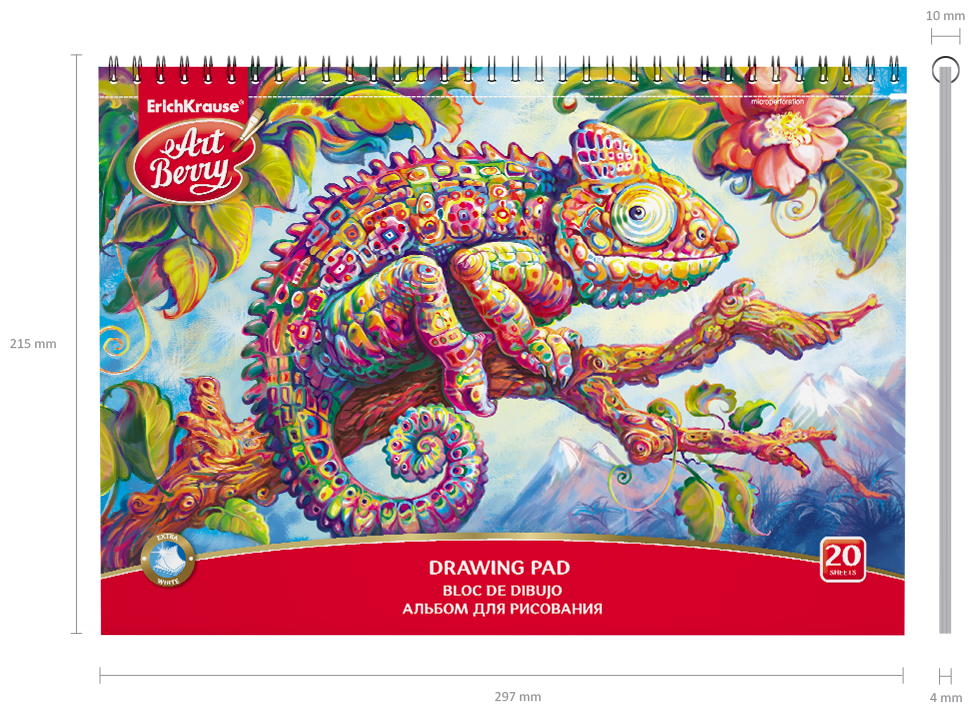 Альбом для рисования А4, 20 листов, на гребне, ErichKrause ArtBerry «Хамелеон», микроперфорация информация: