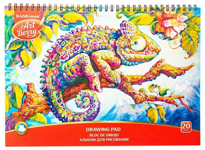 10 цен на Альбом для рисования А4, 20 листов, на гребне, ErichKrause ArtBerry «Хамелеон», микроперфорация