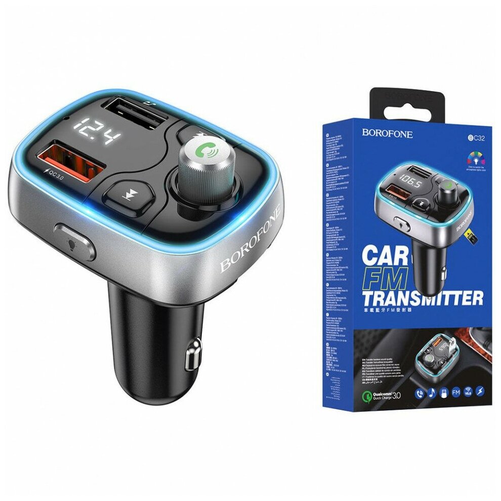 Автомобильный FM модулятор Bluetooth Borofone BC32 (2USB/QC 3.0/TF) черный