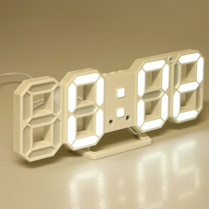 Часы электронные настольные будильник "Цифры", с подвесом, белая индикация, 9 x 3 x 23 см, цифра 7.5