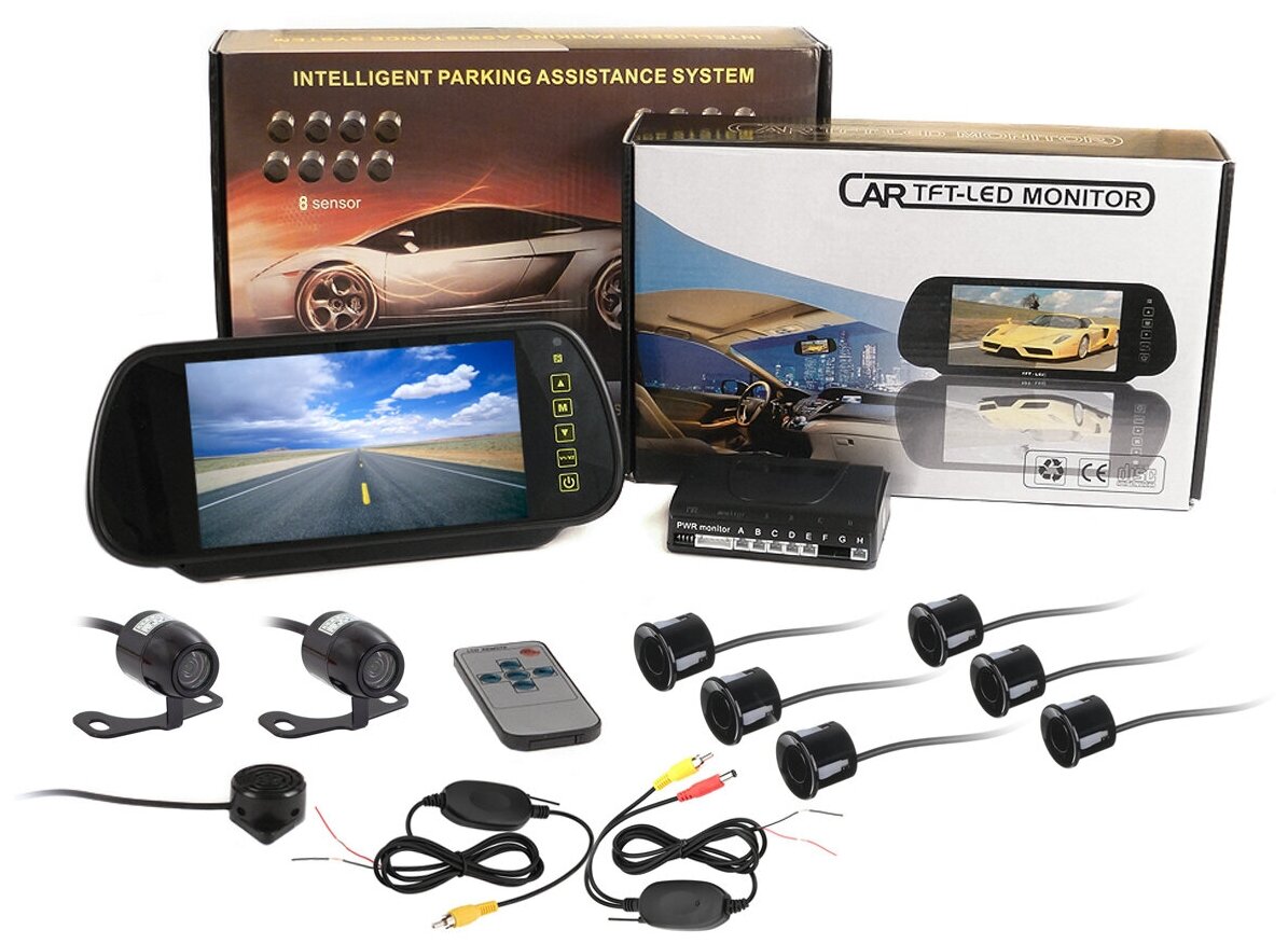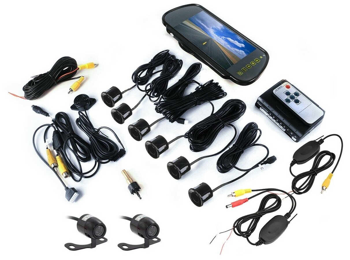 10 цен на MasterPark 041-6-WZ беспроводной парктроник заднем зеркале с двумя камерами, шестью датчиками и монитором 7 дюймов подарочная упаковка