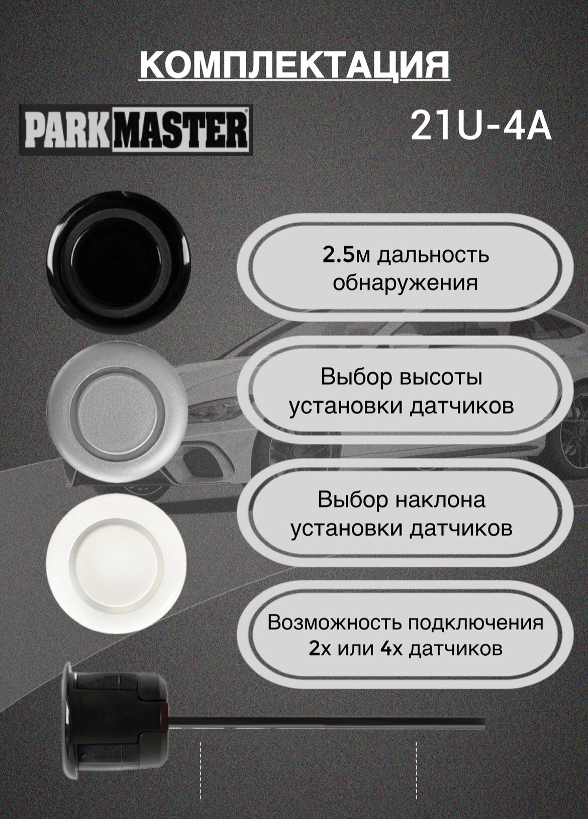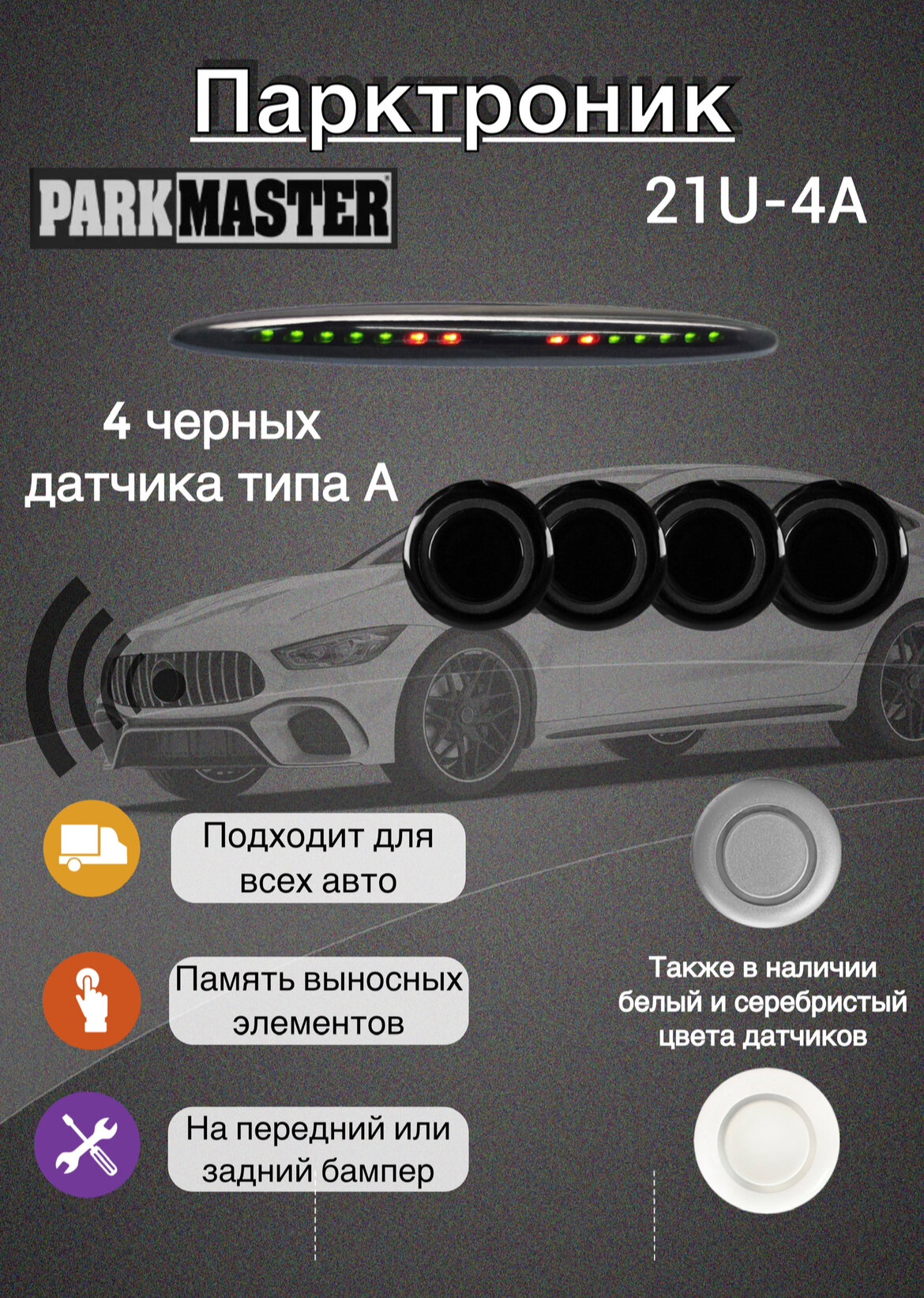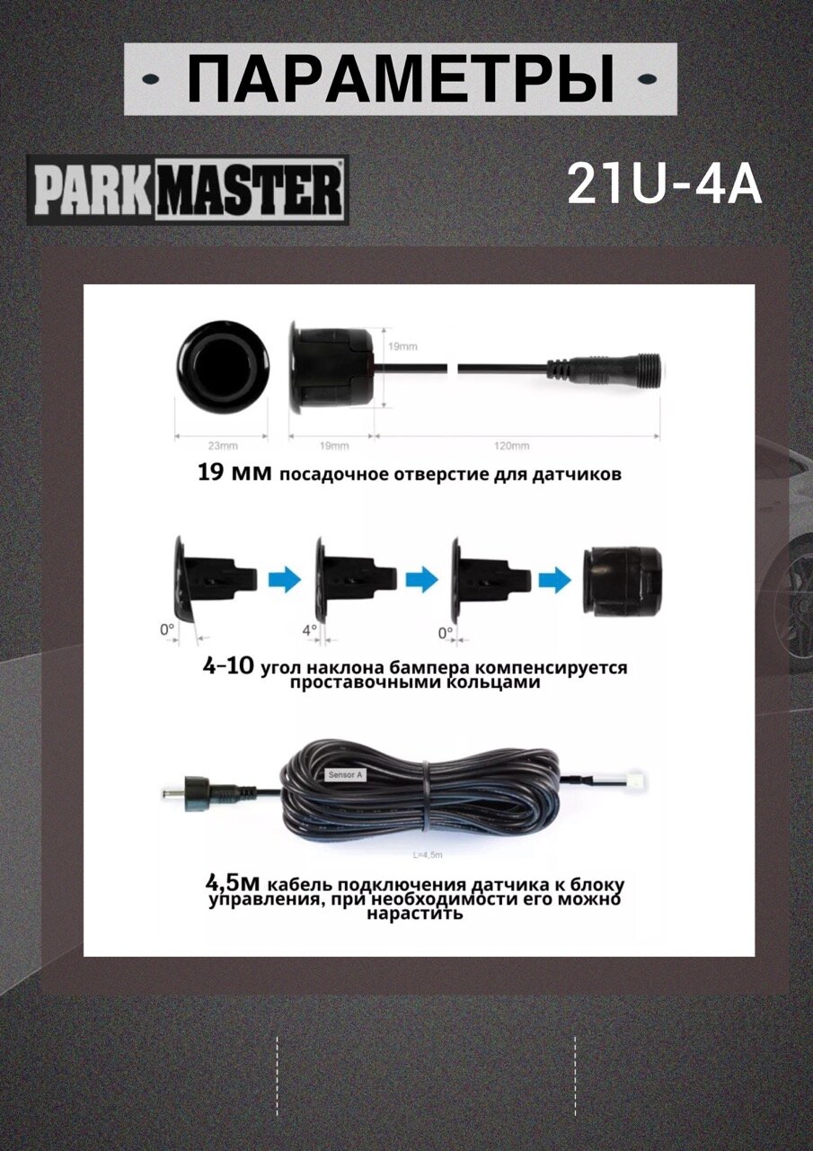 Парктроники на автомобиль, 4 датчика, черный, 21U-4-A-b информация: