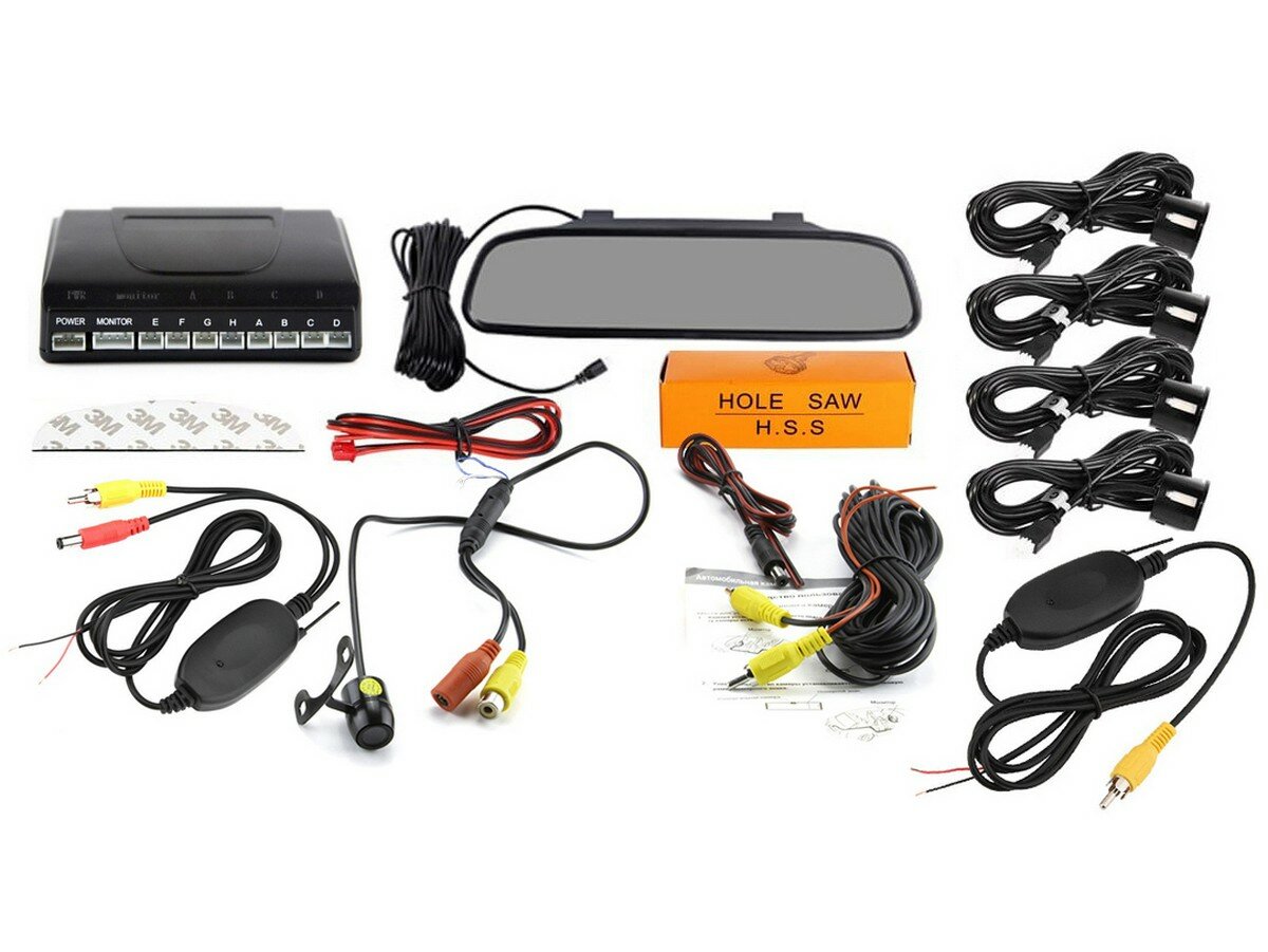 MasterPark 604-4-WZ беспроводной парктроник, четырьмя датчиками с камерой заднего вида в зеркале 4.3 дюйма информация: