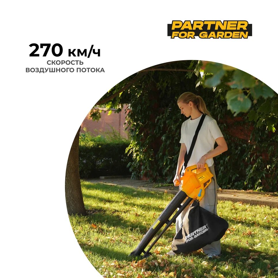 Электрический садовый пылесос / воздуходувка электрическая Partner For Garden BE-3000 3 кВт, 270 км/ч информация: