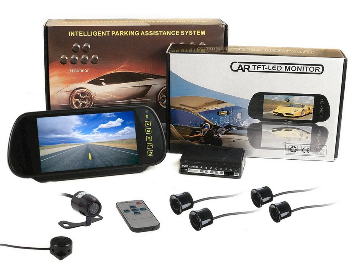 10 цен на MasterPark 608-4-PZ парктроник с камерой заднего вида для автомобиля, 4мя датчиками и монитором в зеркале 7 дюймов