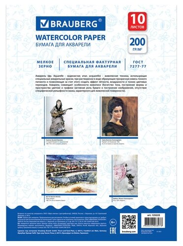 Бумага для акварели А4, 10 л., 200 г/м2, BRAUBERG, "Южное побережье", 125225 информация: