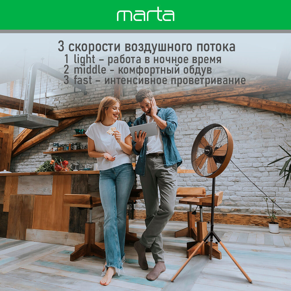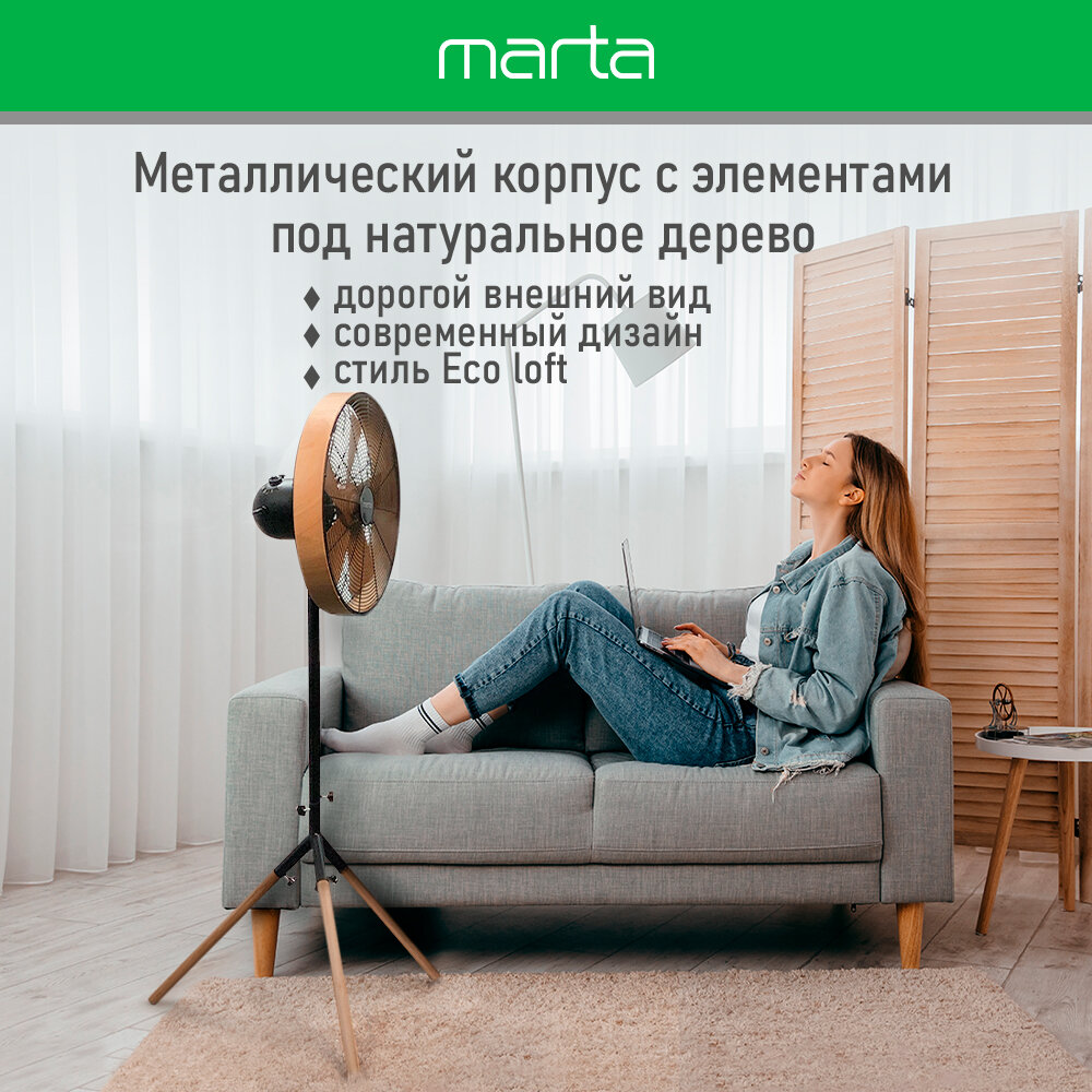 Напольный вентилятор MARTA MT-FN2555 черный/дерево информация: