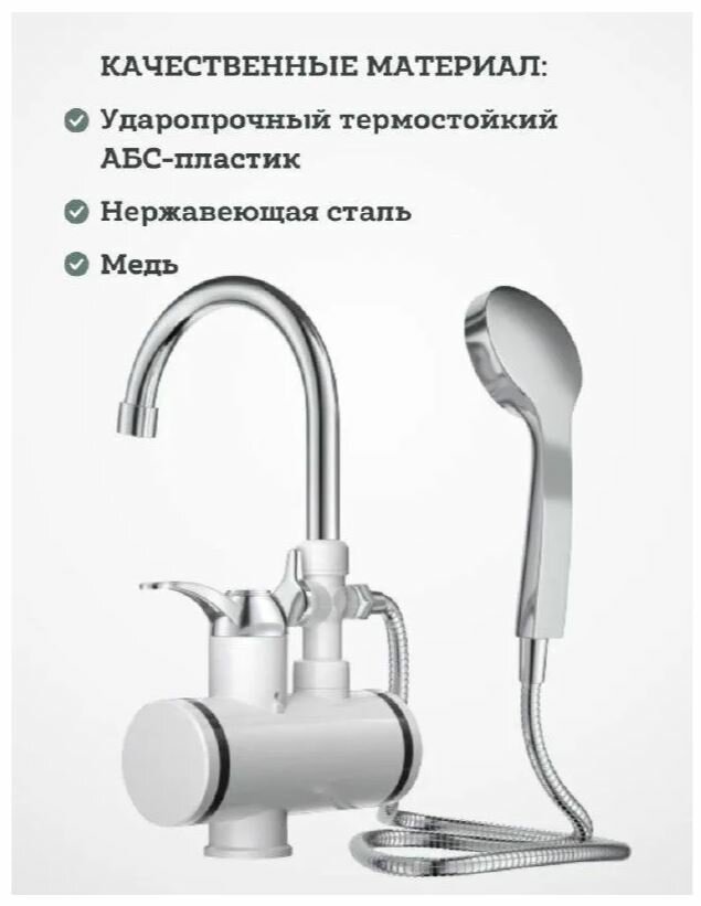 Проточный водонагреватель/ кран-смеситель белый