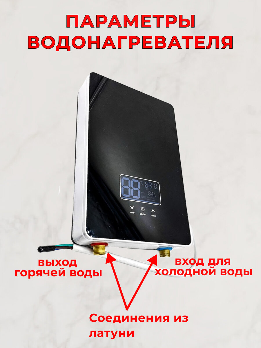 | Особенности | дисплей / душевая лейка в комплекте / подключение к стандартной розетке / пульт ДУ / термометр |