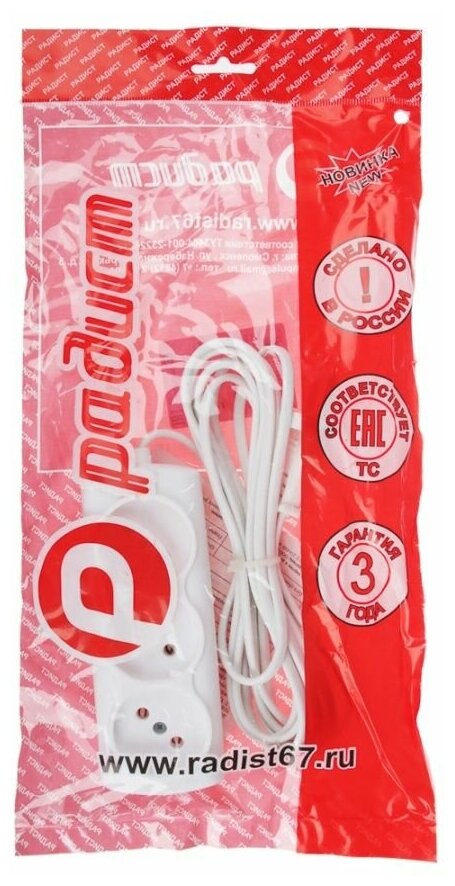 Отзывы на Удлинитель радист Р16-010, 3 розетки без заземления, 3 м, 2х0, 75 мм, 1300 Вт, белый (563)