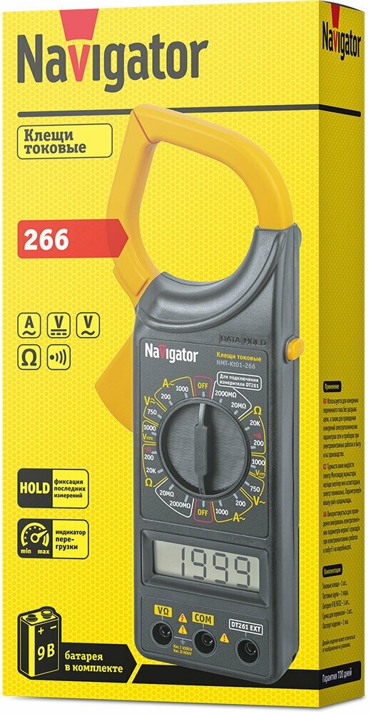 Клещи токовые Navigator 80 261 NMT-Kt01-266 (266), цена за 1 шт. информация: