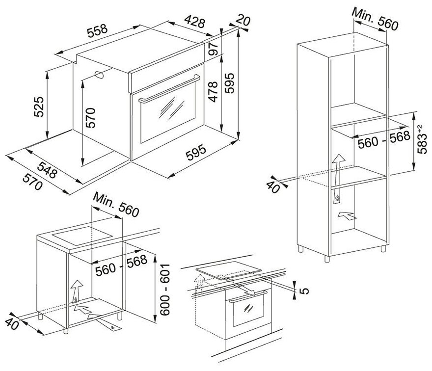Духовой шкаф встраиваемый LEX EDM 077 C IV, 60 см, с конвекцией, механические ручки, объем 60 л, аналоговый таймер, телескопические направляющие.