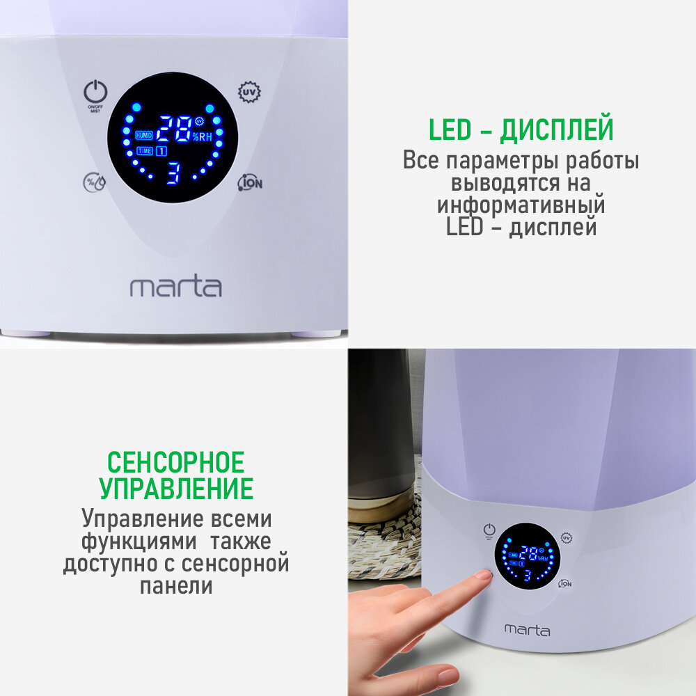 10 цен на Увлажнитель воздуха с антивирусной УФ-лампой MARTA MT-HF4700C белый/серебро