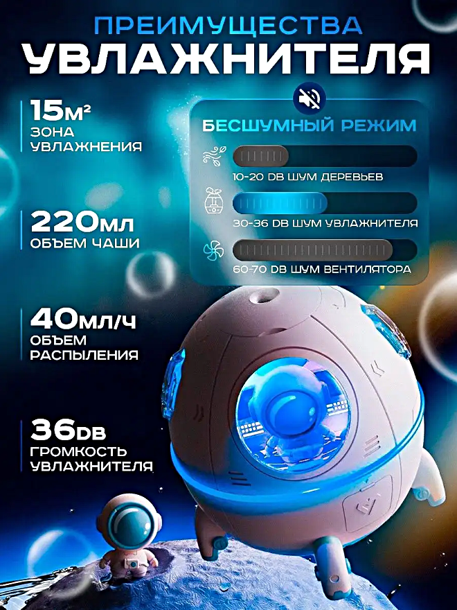 Отзывы на Увлажнитель воздуха ночник SPACE CAPSULE, Увлажнитель воздуха ночник Астронавт для дома с подсветкой, Белый