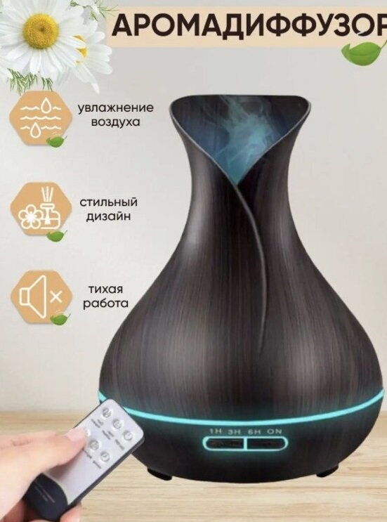 10 цен на Увлажнитель воздуха HM-007/FT905/для декора и создания уюта в доме/ c пультом /подсветка - 7 цветов/400 мл/темное дерево