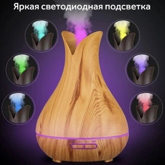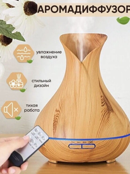 10 цен на Увлажнитель воздуха HM-007/FT905/для декора и создания уюта в доме/ c пультом /подсветка - 7 цветов/400 мл/светлое дерево