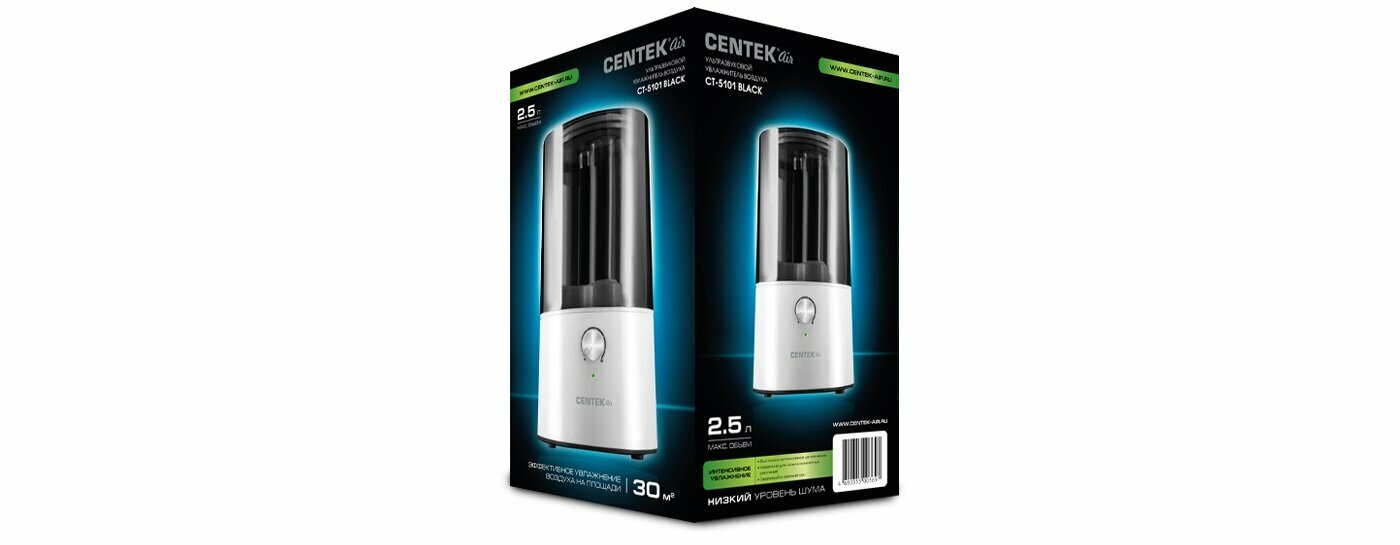 Ультразвуковой увлажнитель воздуха Centek СТ-5101 BLACK <300мл/ч> 8.5ч работы, 2,5л, 30м2
