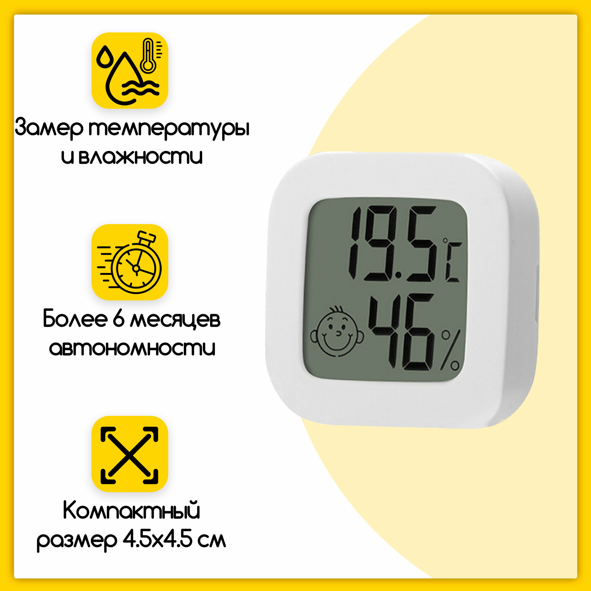 10 цен на Термометр комнатный электронный URM, гигрометр, мини-метеостанция, 4.5x4.5 см, белый