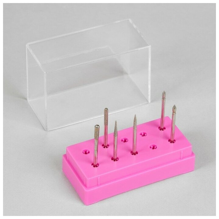Подставка под фрезы, прямоугольная, 10 ячеек, 8 x 3.6 см, с крышкой, цвет розовый/прозрачный, 2 шт. 333 ₽