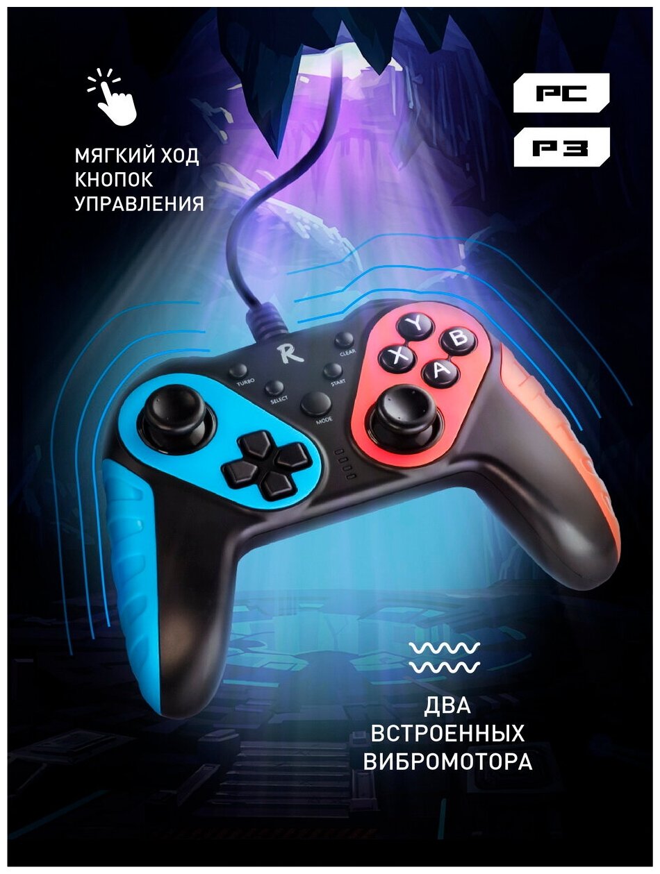 Геймпад игровой проводной SmartBuy Rush Buzzy для консоли PS3 и ПК, Вибро черный (SBG-200-K)/20 информация: