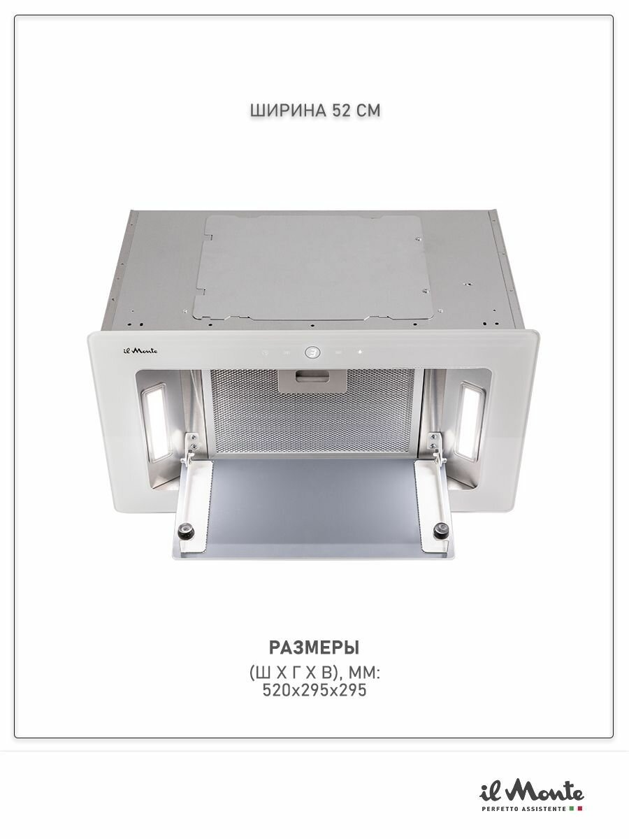 Вытяжка кухонная 50 см, Полновстраиваемая, Мощный мотор 300 Вт, до 1000 м3/ч, LED освещение, il Monte KH-BIN-6001-PRO