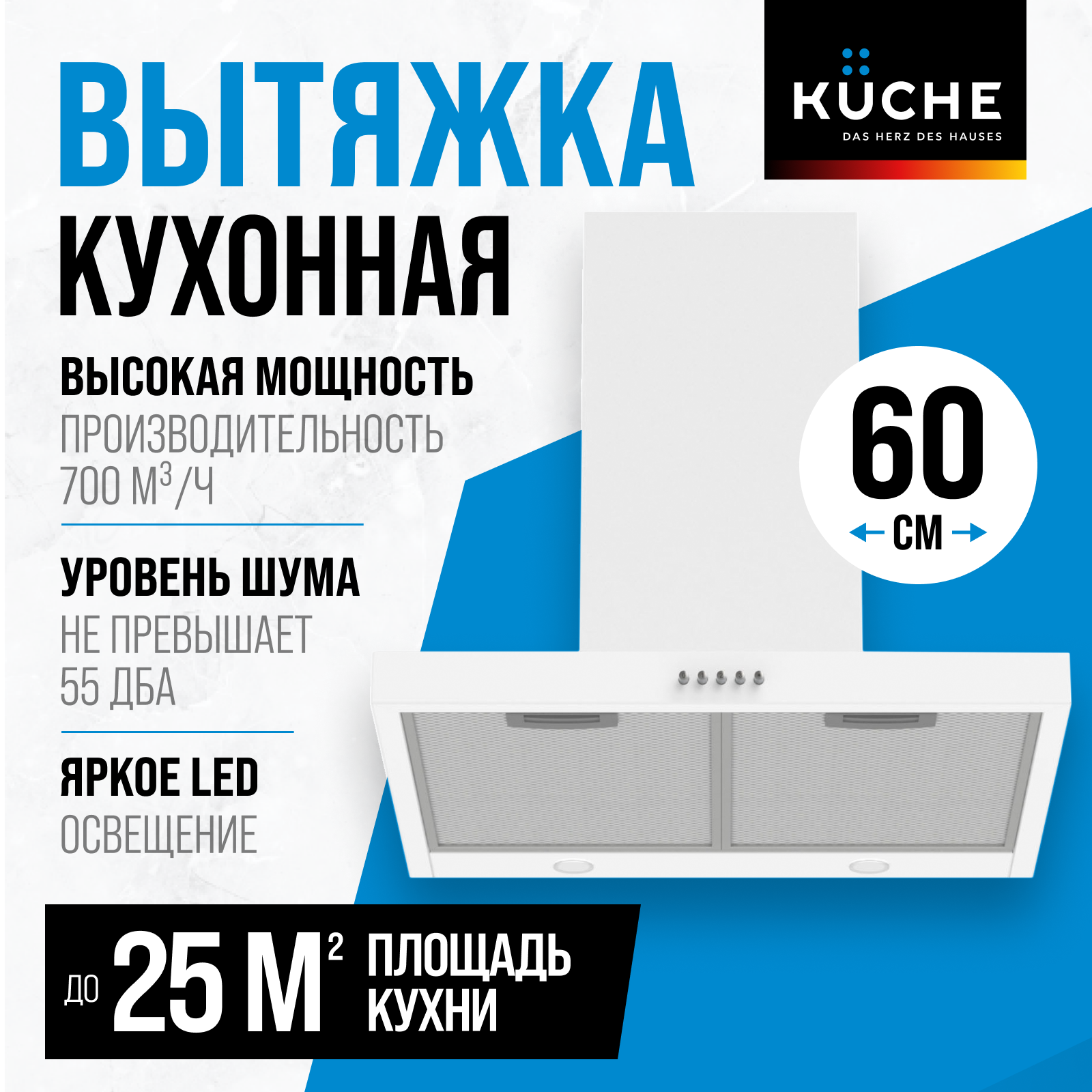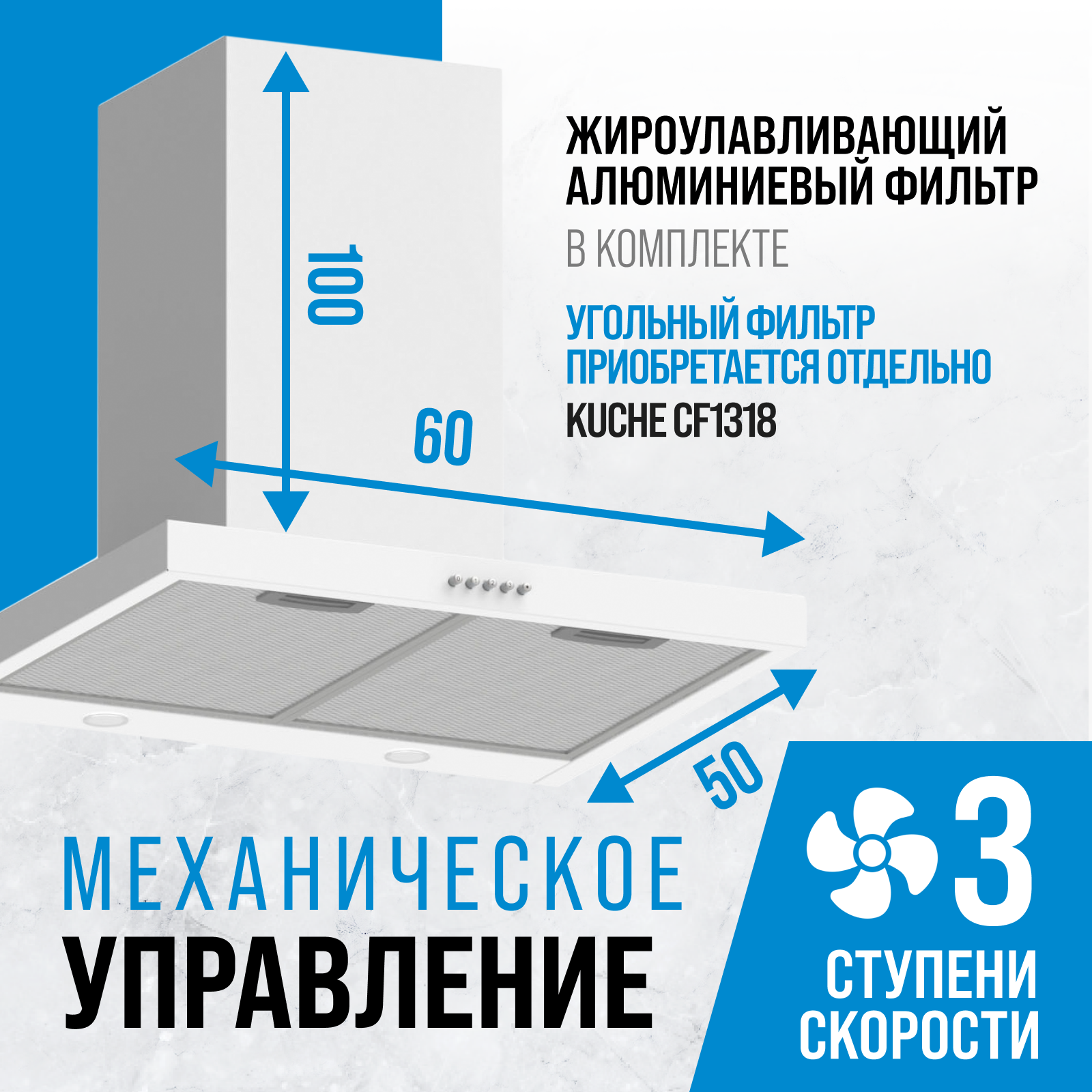 Вытяжка кухонная 60 см купольная KUCHE KAB 600 WL белая для кухни информация: