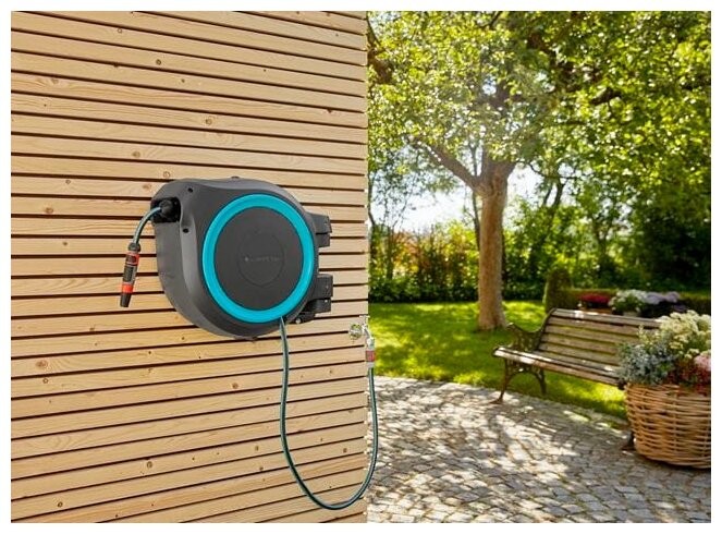 Отзывы на Катушка со шлангом настенная автоматическая GARDENA RollUp XL (голубой цвет)