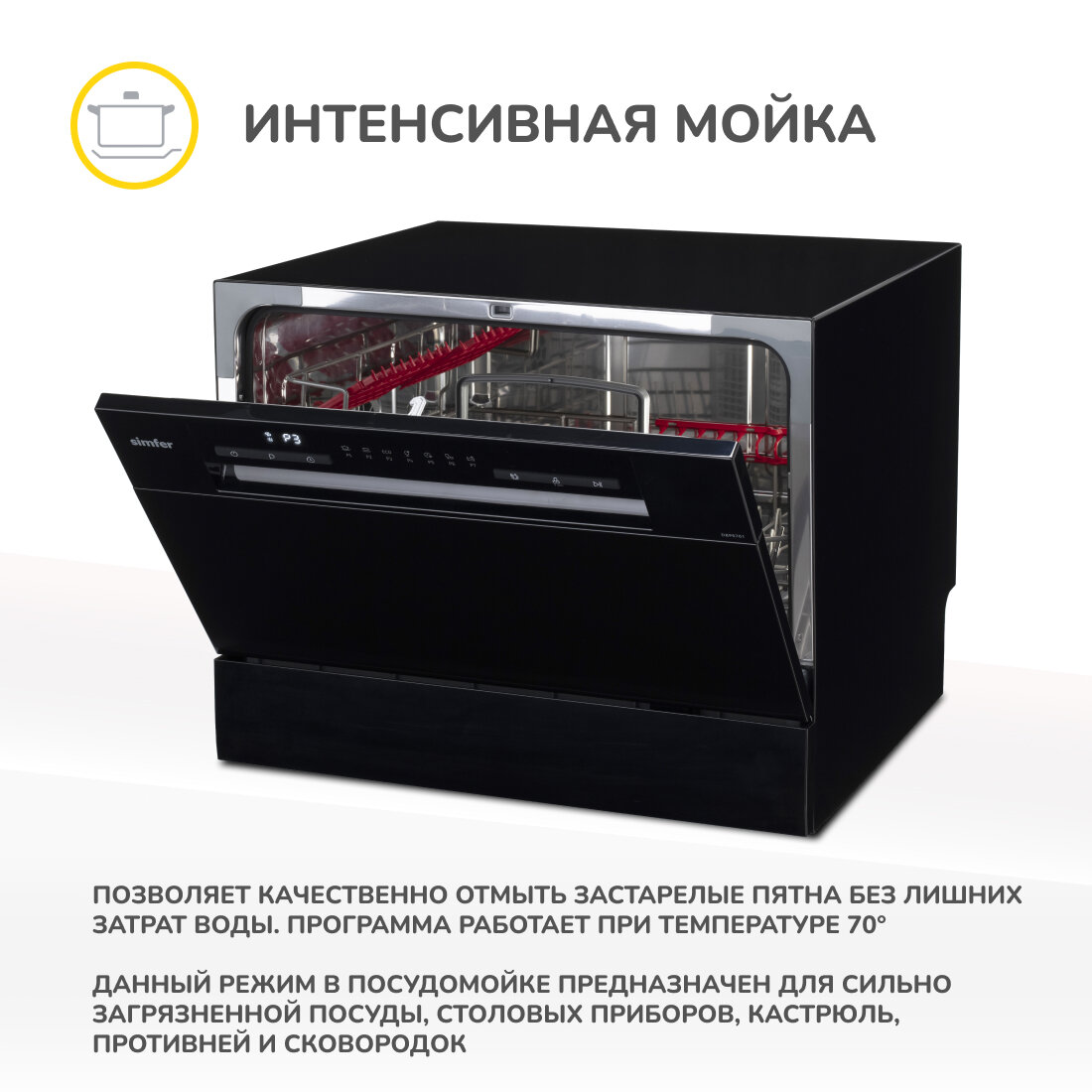 Настольная посудомоечная машина Simfer, 55 см, сенсорное управление